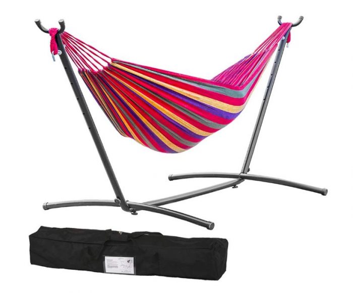 Double Hammock With Space Saving Steel Stand Includes Portable Carrying Case for $64.99