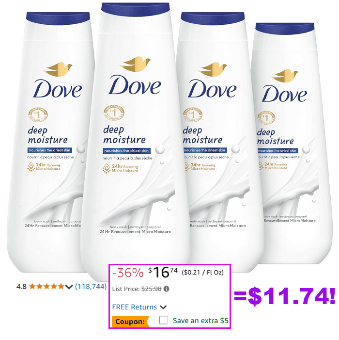 Dove Body Wash Deep Moisture, 4 Count for $19.70 (Reg $25.98)