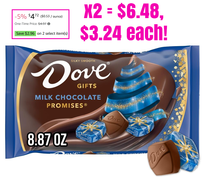 DOVE PROMISES Milk Chocolate Candy 8.87 oz Bag, 2 for $6.48, Just $3.24 Each (Reg $4.97)!