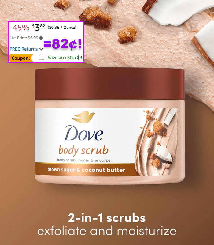 Dove Scrub Brown Sugar & Coconut Butter for $4.49 (Reg $6.99) *UPDATE: Back up to $6.99*