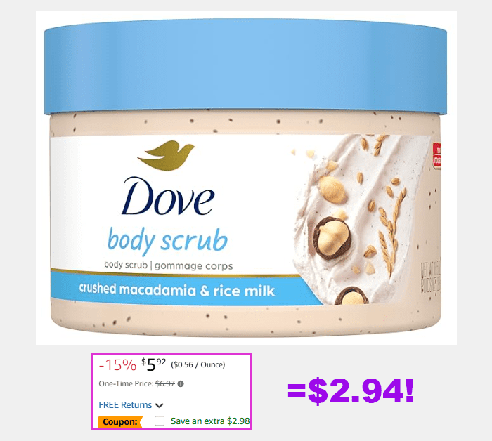 Dove Scrub Macadamia & Rice Milk, 10.5 Oz for $6.97