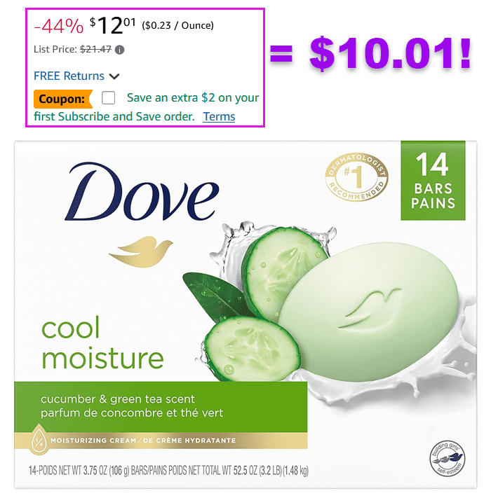 Dove Skin Care Beauty Bar, Cucumber and Green Tea, 14 Bars for $14.13 (Reg $21.47)