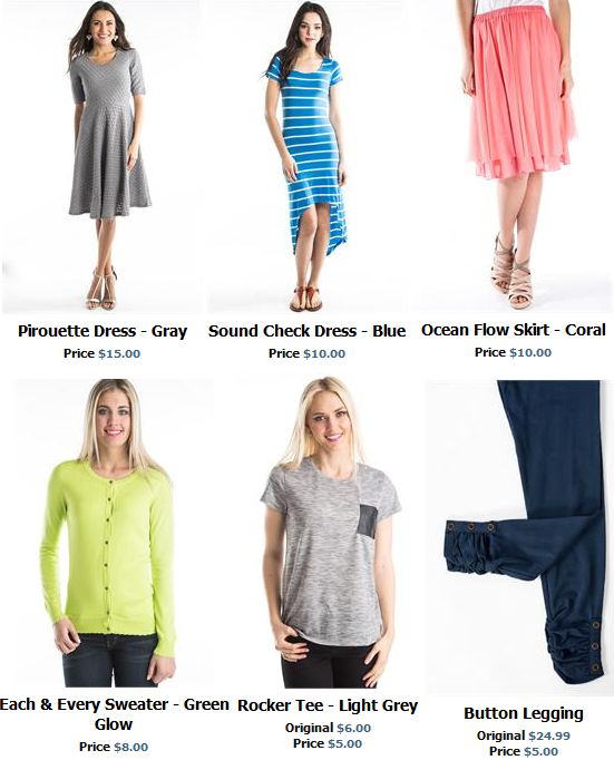 I love the dresses, and many are just $10! Everything us under $15! Choose from jeans, sweaters, dresses, and more.