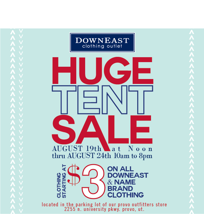 If you’re a fan of DownEast clothing, you don’t want to miss their HUGE Tent Sale in Provo! They have a similar sale in Logan, and I LOVE it. Their layering shirts and cami’s usually start at just $3!