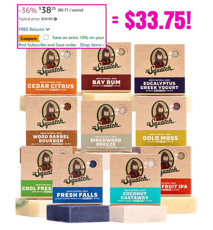 Dr. Squatch Men’s Bar Soap Gift Set (10 Bars) for $33.75 (Reg $60)!