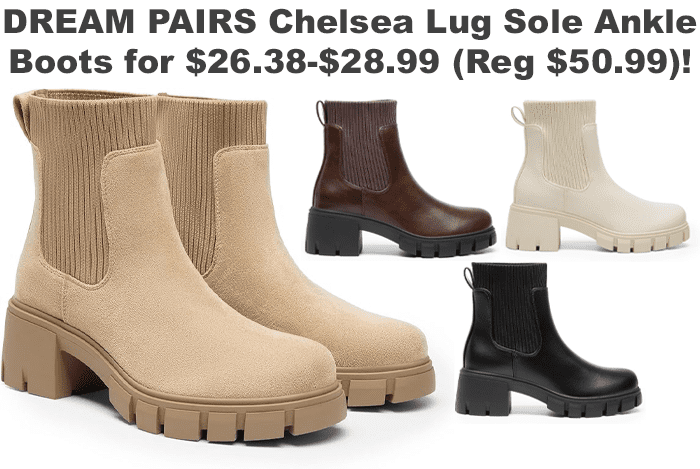 DREAM PAIRS Chelsea Lug Sole Ankle Boots for $26.38 – $28.99 (Reg $50.99)!