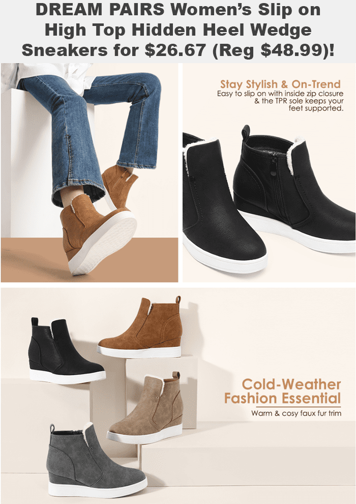 DREAM PAIRS Women’s Slip on High Top Hidden Heel Wedge Sneakers for $45.99 (Reg $48.99)