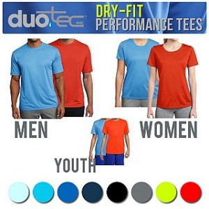 Duo Tec Dry-Fit Performance Tees For Men, Women or Youth – 1 for $6.49 or 6 for $25.98 + It SHIPS FREE!