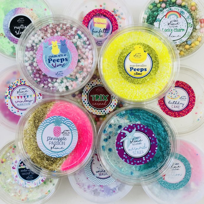 How cute are these! This slime is Made by Avery & Livy – age 10. After about 6 months of daily slime making, they have got it down! Their slime is kind of a big deal around here.