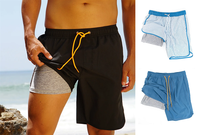 These swim trunks are made of recycled plastic water bottles! Don’t worry, they’re still comfortable, and it also means they’re naturally odor resistant! Plus they have a performance liner built-in that is extremely soft, comfortable, and supportive.