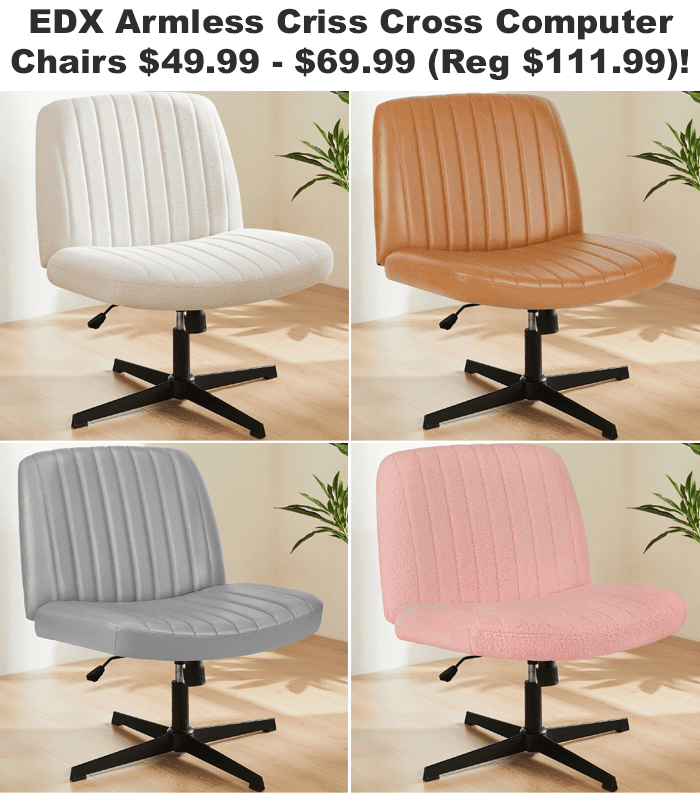 EDX Armless Criss Cross Computer Chairs for $49.99 – $69.99 (Reg $111.99)!