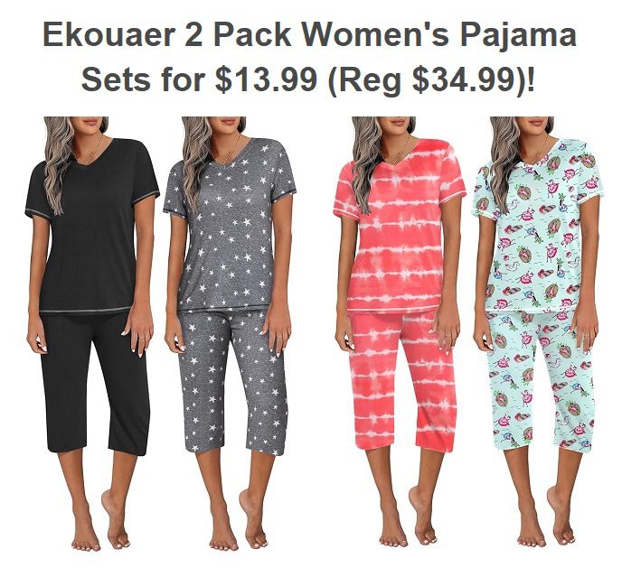 Ekouaer 2 Pack Women’s Pajama Sets for $13.99 (Reg $34.99)!