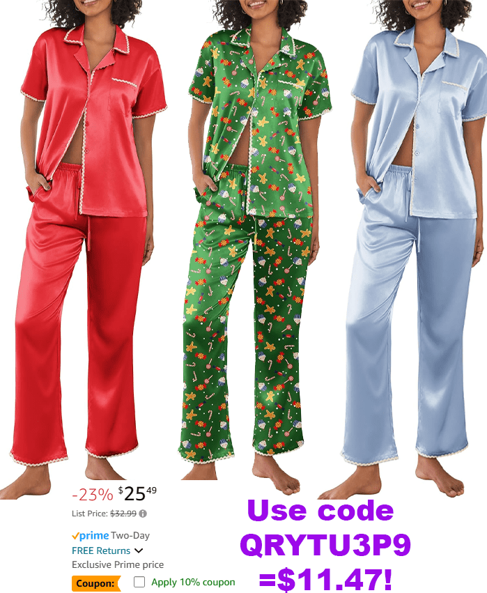 Ekouaer 2-Piece Satin Pajamas with Ric Rac Trim for $25.49 (reg $32.99)