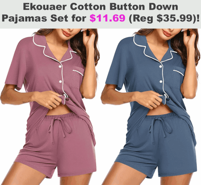 Ekouaer Cotton Button Down Pajamas Set for $23.79 (Reg $35.99)