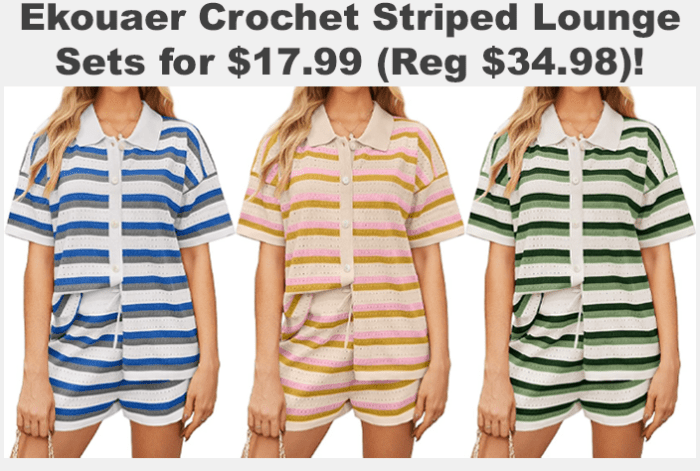Ekouaer Crochet Striped Lounge Sets for $33.98