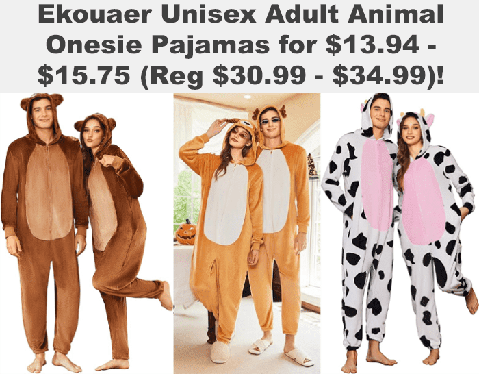 Ekouaer Unisex Adult Animal Onesie Pajamas for $30.99 – $34.99
