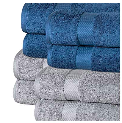 Wrap yourself in this cozy bath towel after stepping out of the shower. Each towel in this set of four has a 550 GSM for a thick construction that’s highly absorbent and the towels feature a stripe of ribbing for a touch of elegance.