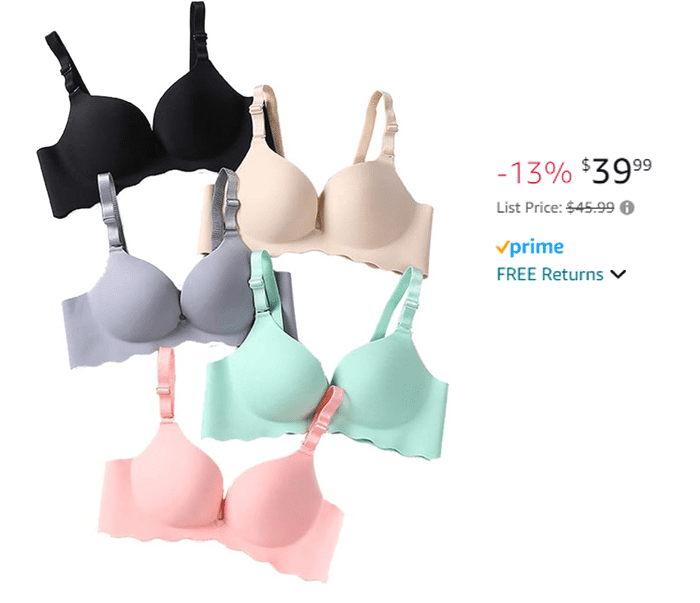 Eleplus Comfort No Wire, Seamless Bras, Pack of 5 for $39.99 (Reg $45.99)!