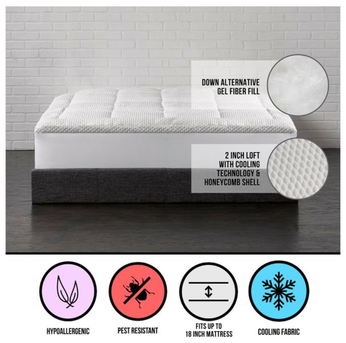Add a soft layer to your bed with this gel-infused mattress topper that helps to keep you cool and comfy throughout the night. It comes in Twin, Full, Queen, King, and Cal King sizes.