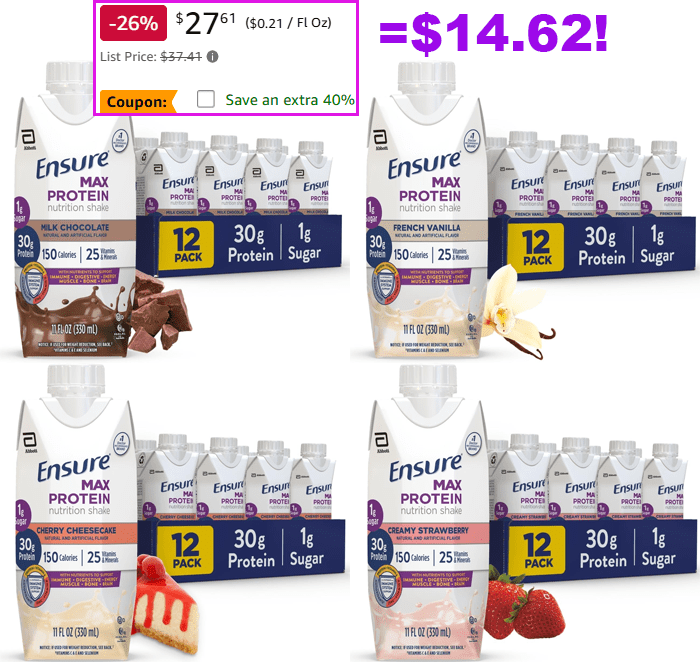 Ensure Max Protein Shake,11 fl oz – 12 Pack for $32.48 (Reg $37.41)