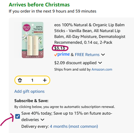 HINT: Did you know you can take advantage of Subscribe and Save discounts but still get the order right away? To do this, follow these steps: