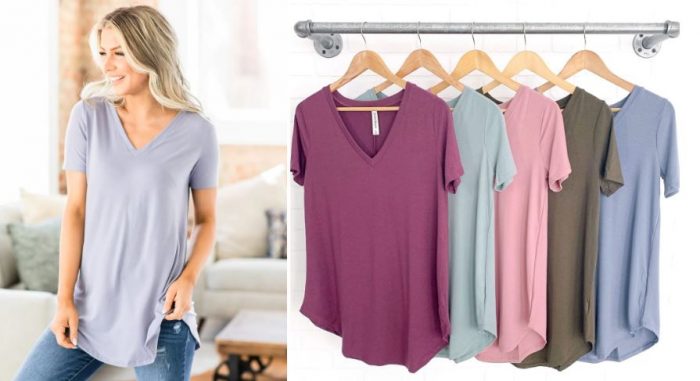 Short sleeves, a longer length, and subtle v-neck make this top the perfect staple for every woman’s wardrobe!
