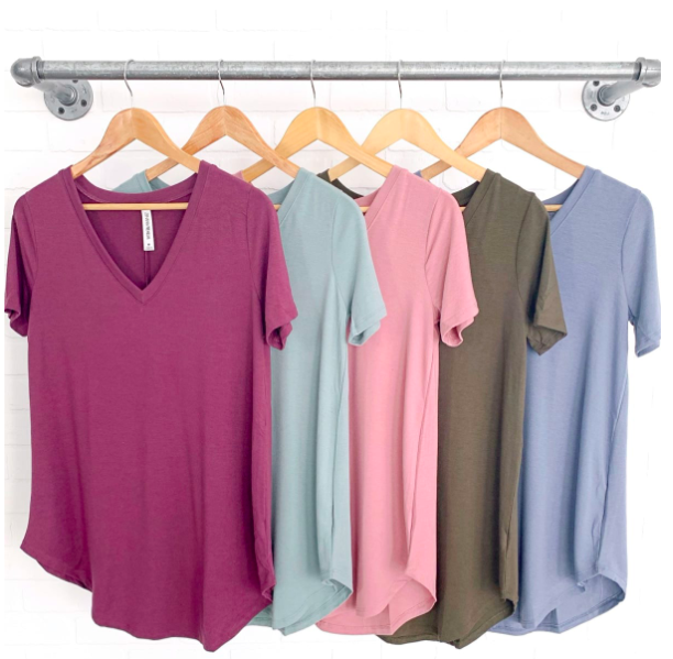 The short sleeves, a longer length, and subtle v-neck this top is perfect for every woman’s wardrobe!