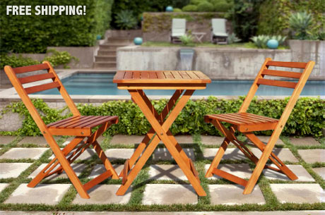 This beautiful table and chair set is available for $59 today, and that includes FREE shipping! This bistro set is made from premium Eucalyptus wood, which is weather resistant, low maintenance and environmentally friendly because it is a sustainable wood. The finish is an oil rub, and to maintain the color all you need to do is apply oil once a year. The protective qualities of Eucalyptus include being resistant to mold, mildew, fungi, termites, rot and decay.