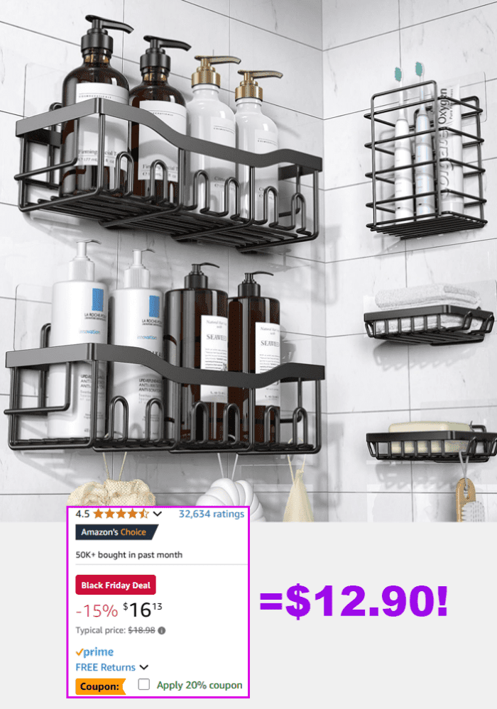 EUDELE Adhesive Shower Caddy, 5 Pack for $16.13 (Reg 24.99)!
