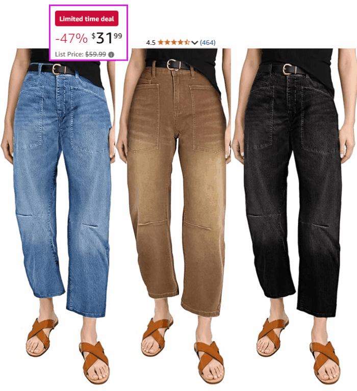 These barrel jeans come in a bunch of colors and get great reviews! Such a cute style!