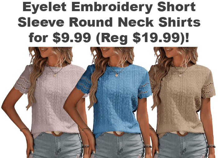 Eyelet Embroidery Short Sleeve Round Neck Shirts for $19.99