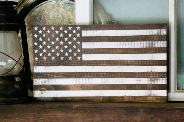 Handmade Distressed American Wood Flag $17.99 + $4.99 Shipping for first flag and $3.99 for each additional.