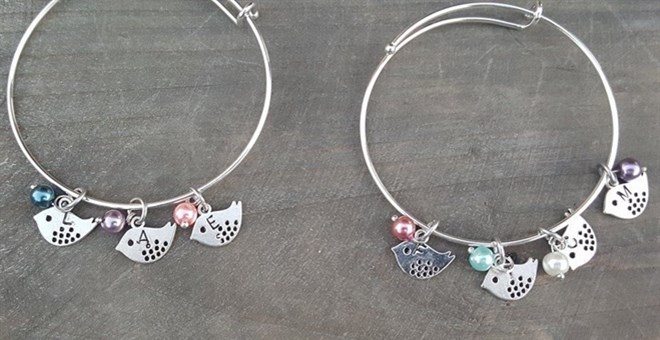 Choose up to 8 birdies and their coordinating birthstone bead along with their hand-stamped initial to create a one of a kind special piece!