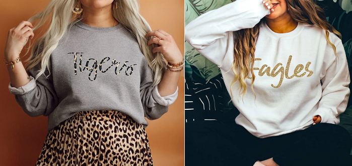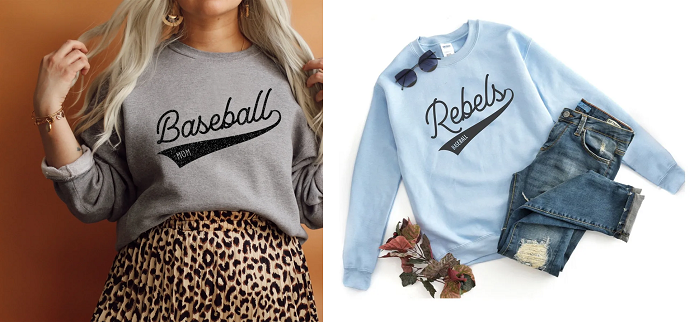 These fun sweatshirts can be personalized however you want, with words and a variety of colors! Choose your favorite team, state, group…whatever you’d like! They are a unisex, baggy fit in sizes S-XL.