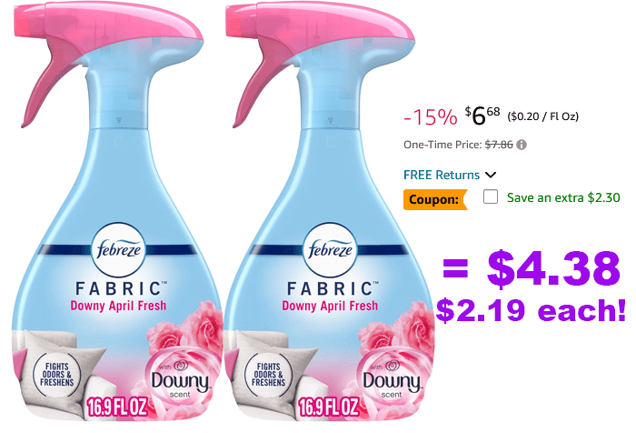 Febreze Odor-Fighting Fabric Refresher, Downy April Fresh, 16.9 fl oz, Pack of 2 for $7.86