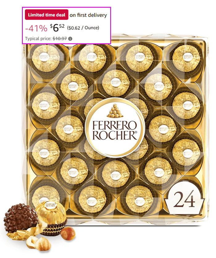 Ferrero Rocher, 24 Count, Premium Gourmet Milk Chocolate Hazelnut, Individually Wrapped Candy for $7.67 (Reg $10.97)
