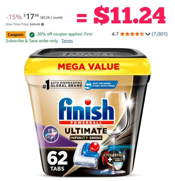 Finish Ultimate Plus Infinity Shine Dishwashing Tablets, 62-Count for $20.45 (Reg $22.60)
