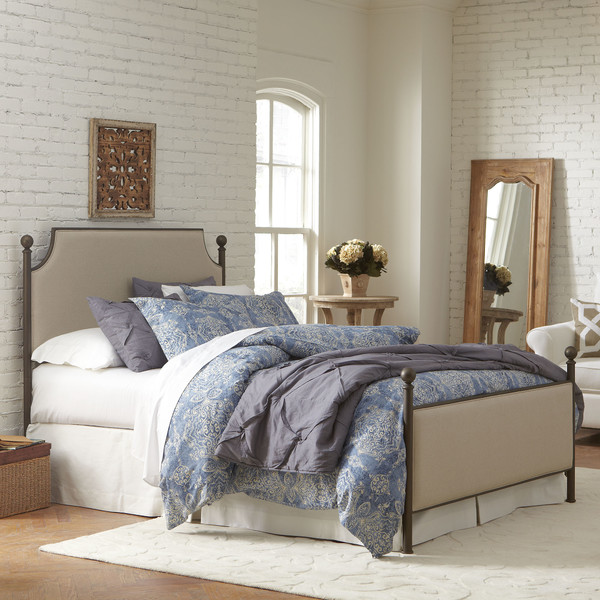 Favorites first! This gorgeous upholstered panel bed is crafted with ball-topped metal posts and rails in an oil-rubbed bronze finish. I can’t begin to tell you how amazing this is! A King upholstered bed with headboard, foot board and rails for under $400!
