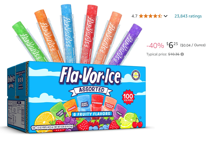 Fla-Vor-Ice Popsicle Variety Pack of 1.5 Oz Freezer Bars, Assorted Flavors, 100 Count for $7.35 (Reg $10.36)