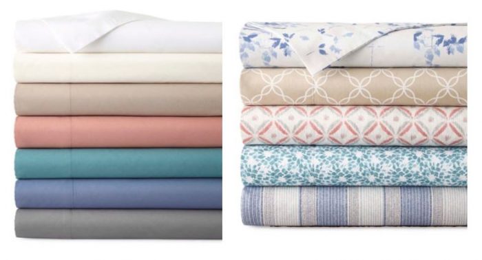 If you prefer cotton sheets, these JCPenney Home™ 300tc 100% Cotton Ultra Soft Print Sheet Sets and Pillowcases. They come in solid colors, too, and you can find those here.