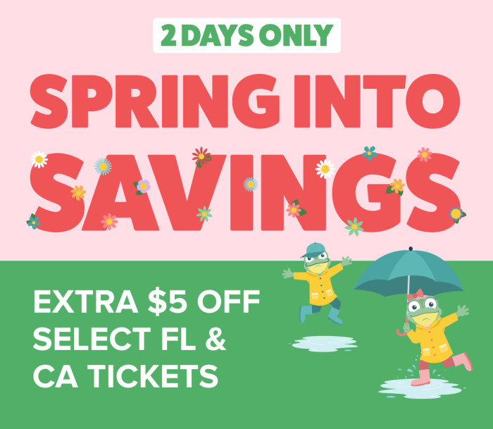 Going somewhere fun for Spring break, summer vacation, or any time this year? Get your theme park tickets today through Undercover Tourist and save an extra $5 off already discounted prices! Hurry, this flash sale ends tomorrow, February 20th.