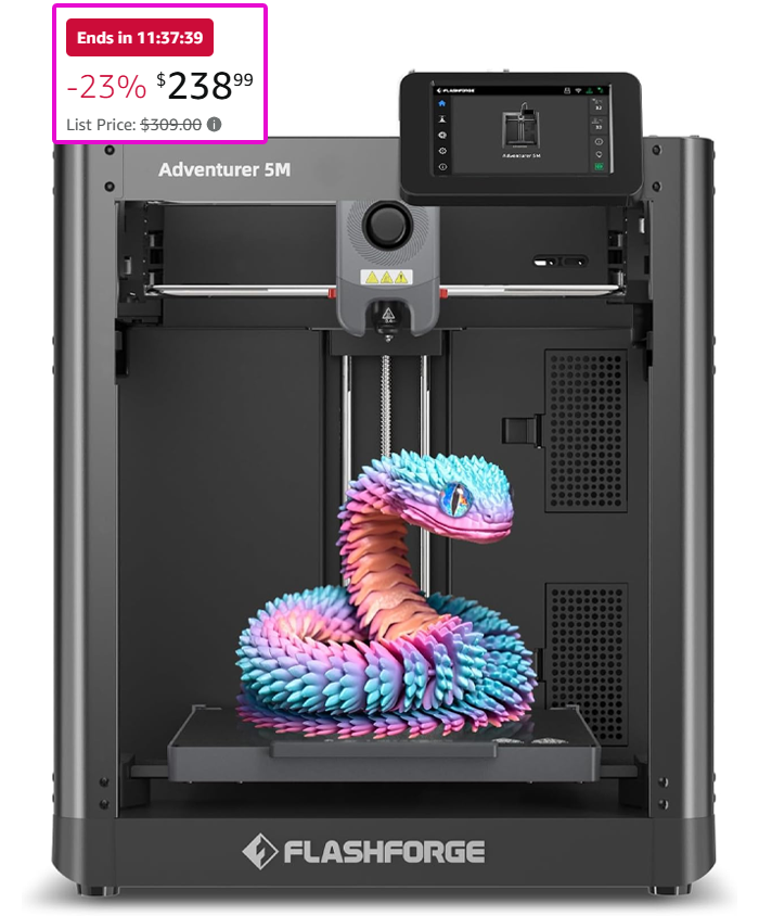 FLASHFORGE Adventurer 5M 3D Printer for $238.99 (Reg $309)!