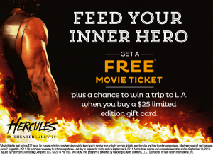 If you’re planning on seeing Hercules, head on over HERE and purchase a $25 Red Robin Gift Card. Then you can go HERE and enter your code to get a FREE movie ticket to see the movie! It will be released in theaters on July 25.