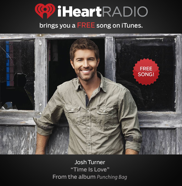 Hooray for FREE music! You can get Josh Turner’s song Time Is Love FREE from iHeartRadio.com! Just head over here to their website and click the “Get it free on iTunes” button. You’ll automatically be connected to the iTunes store, and iTunes will open and your song will start downloading if you already have it installed. The iHeartRadio site also provide you with a code and instructions on what to do if you don’t have iTunes installed yet.