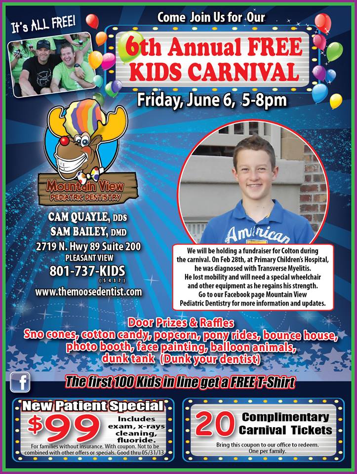 If you live north of Salt Lake (or you don’t mind a little drive) you might want to head on up to Pleasant View tonight. Mountain View Pediatric Dentistry is hosting their 6th Annual FREE Kids Carnival!!