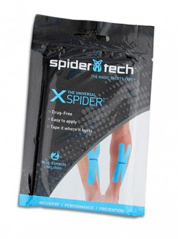 Each Spider is made of one continuous piece of Kinesiology tape so that it integrates with the body in a super-functional manner. The tape has a very specific elasticity built into the weave pattern of the cotton fabric, which mimics the elasticity and thickness of human skin, allowing it to integrate, support and stabilize without adversely affecting healthy ranges of motion.