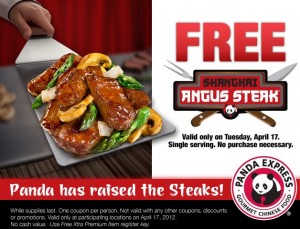 Are you ready for tax day? Panda Express is celebrating tax day by giving away Free servings of Shanghai Angus Steak with this coupon. No purchase necessary! If you didn’t know, tax day this year is on April 17th!