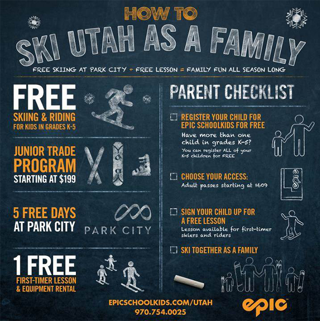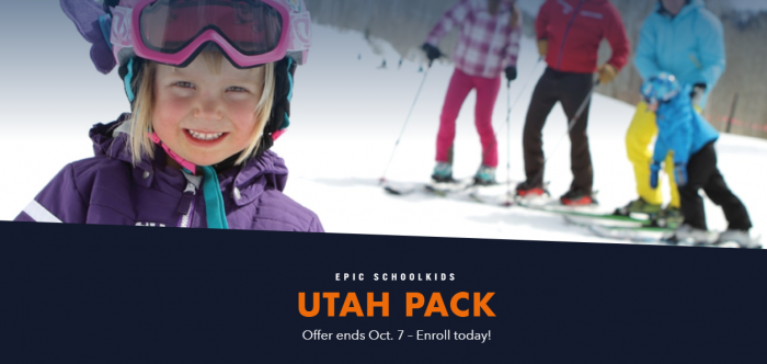 The Epic SchoolKids Utah Pack is a FREE program for Utah Kindergarten through 5th graders that provides FIVE free days of skiing or riding at Park City. It includes one FREE first-timer ski or ride lesson* with equipment rental.