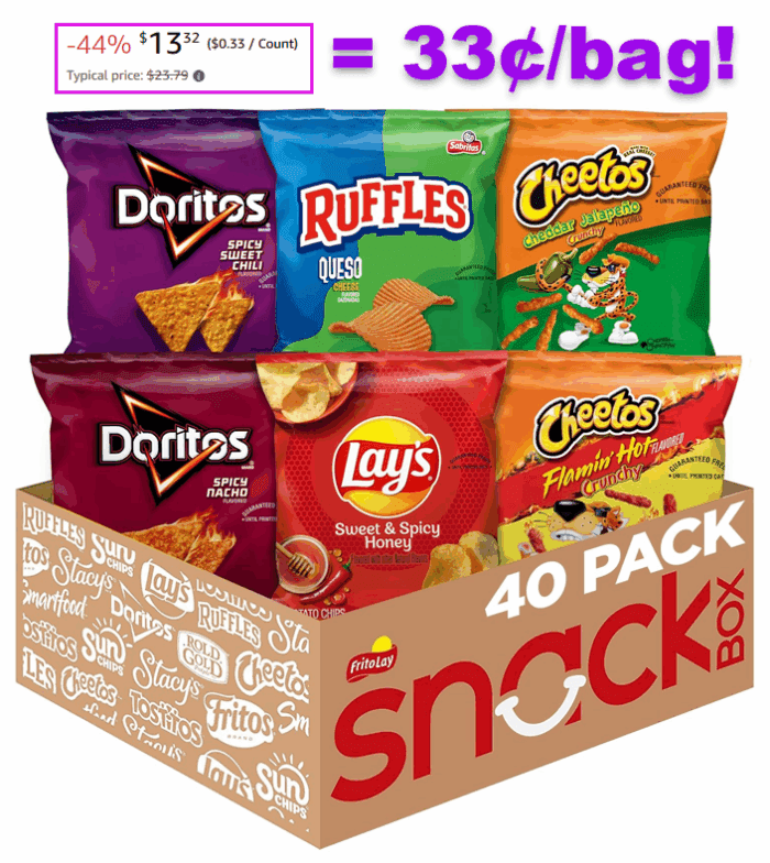 Frito Lay Cheesy Spicy Sweet Variety Pack, (Pack of 40) for $15.67 (Reg $23.79)!