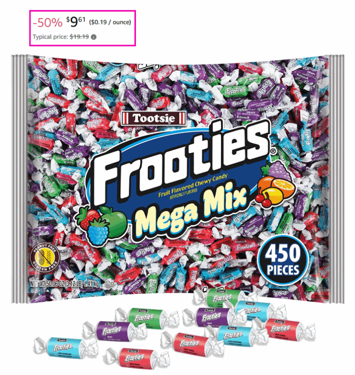 Frooties Mega Mix – 450 Pieces Assorted Fruit Flavor Chewy Candy, 50.06 oz for $10.12 (Reg $19.19)